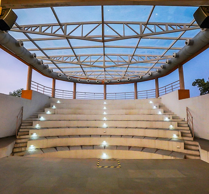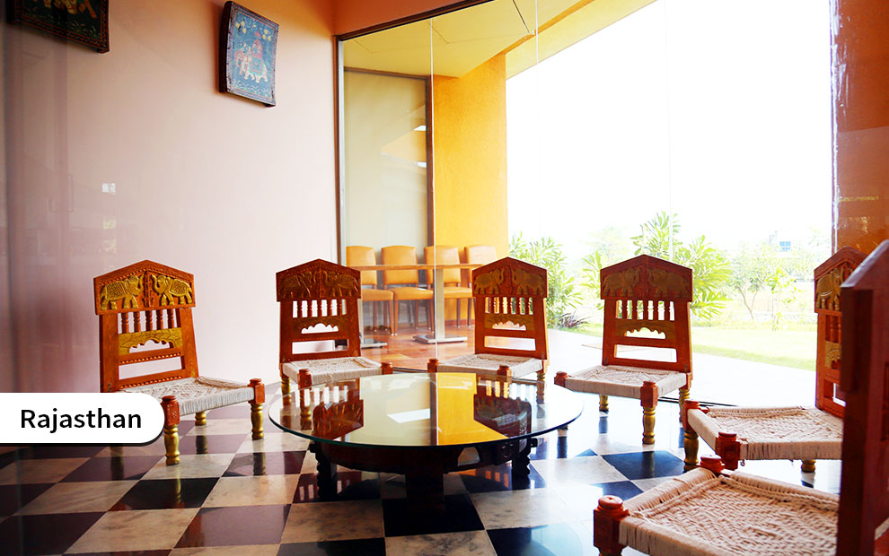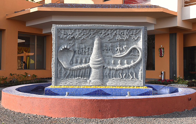 Kautilya offers a world class learning facility with 57 residential rooms, 3 large modern state of the art learning spaces, an amphitheatre, 10 internationally themed discussion rooms, a gym, a sports lounge and a walking track. As you enter Kautilya, a custom-made granite panel depicting Samudra Manthan welcomes you to your personal Manthan & Chinthan. At the discussion space, the Trimurti will welcome you with Tridevis and Arthanariswara, reminding you of the immense integrated power you possess.
